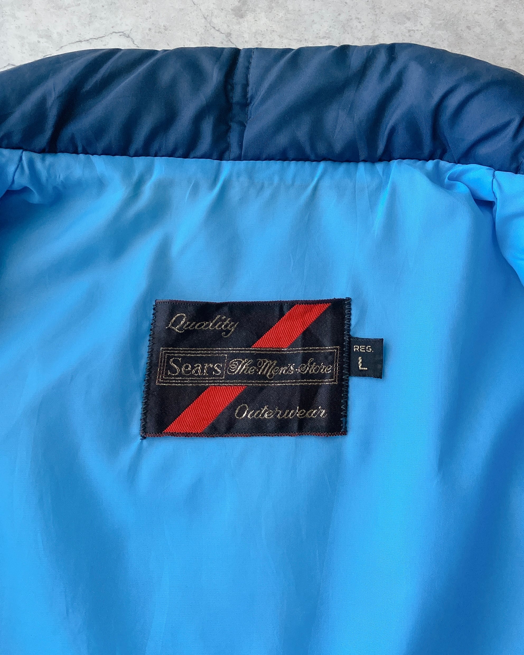 70年代頃の〈Sears〉、ネイビー×ライトブルーのパデッドベスト。
