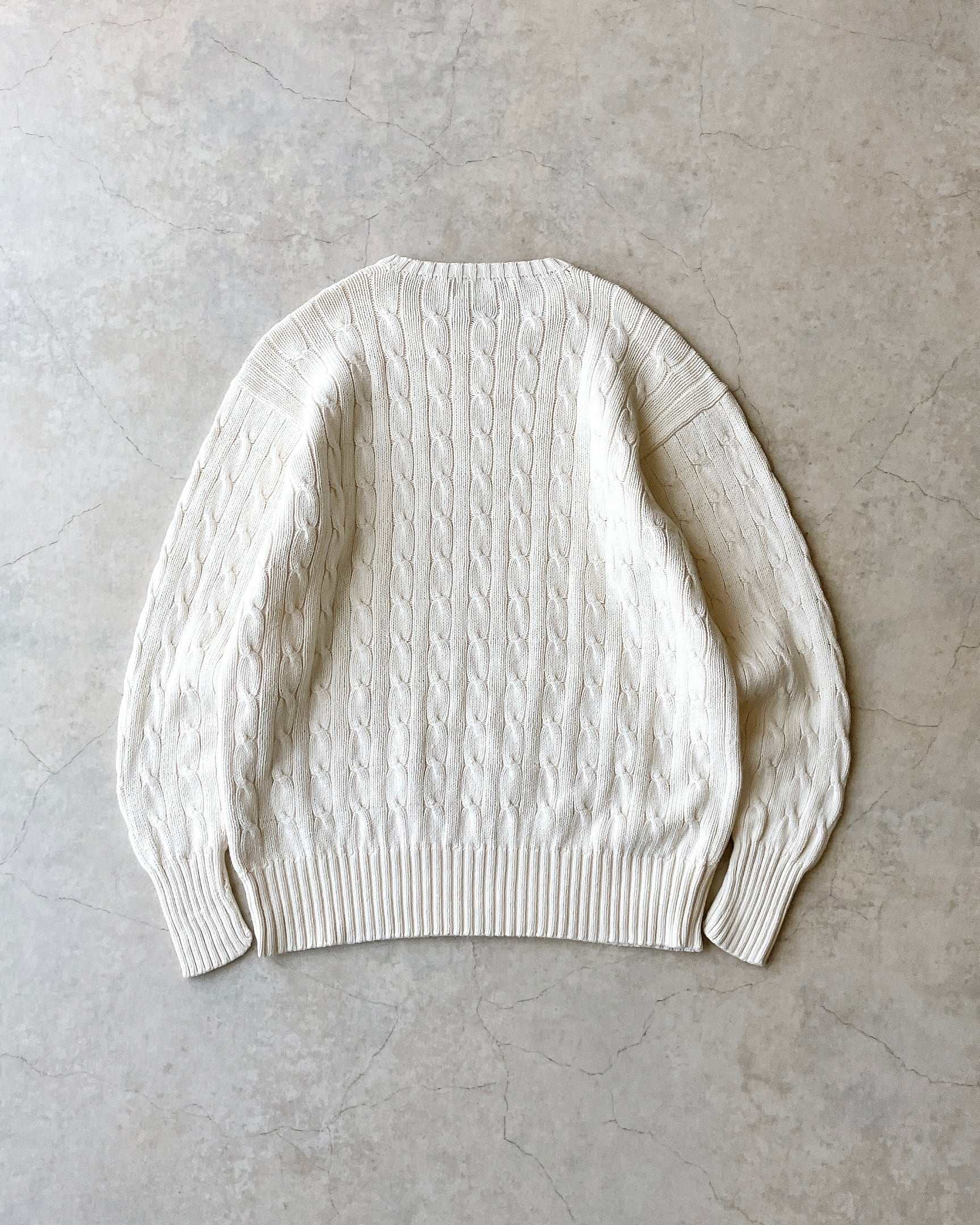 90s Polo by Ralph Lauren Cotton Cable Knit Sweater “Off-White” / ポロ ラルフローレン ケーブル コットンニット セーター オフホワイト