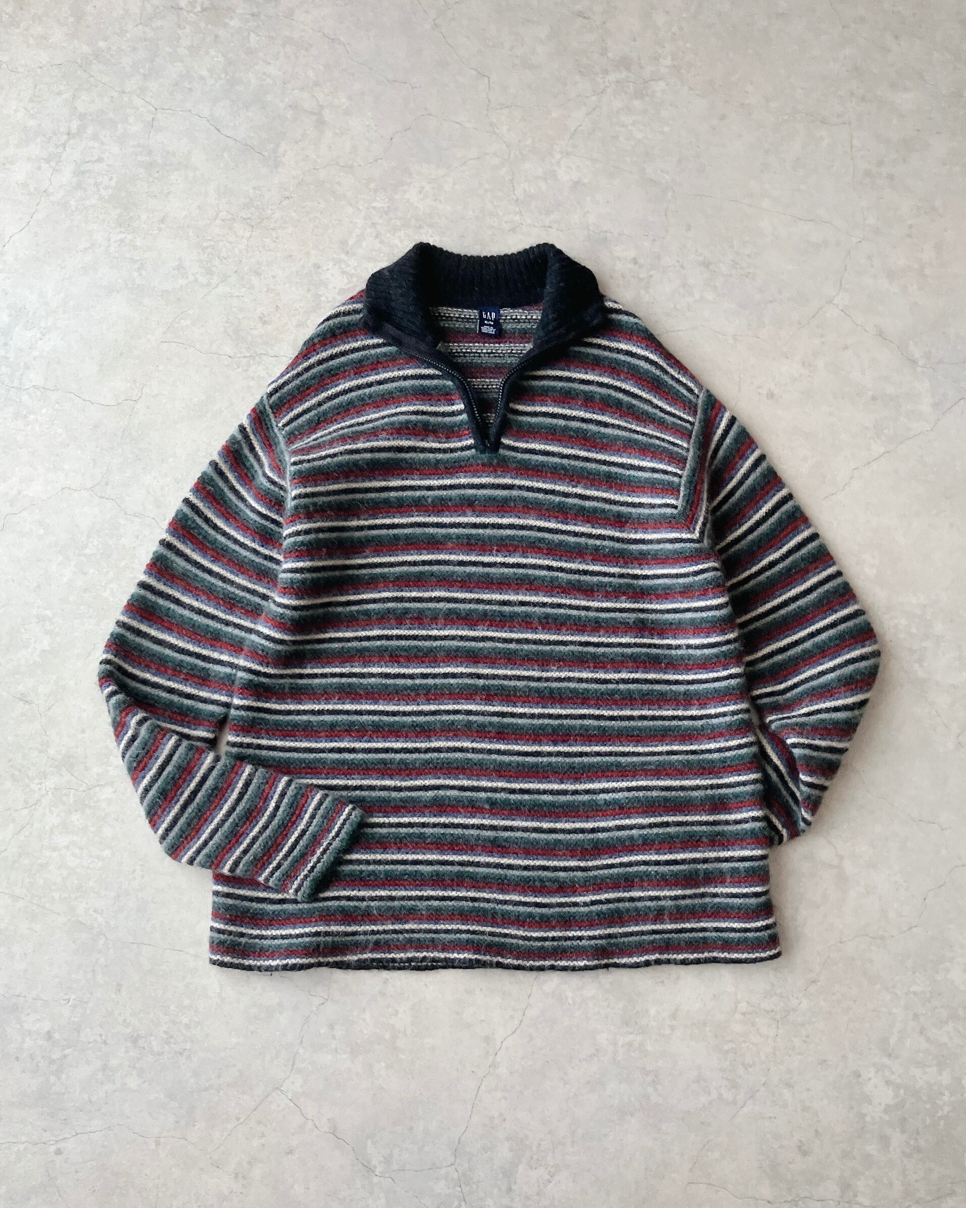 00s OLD GAP Multi Border Half-Zip Merino Wool Knit Sweater 2001s / オールドギャップ ハーフジップ ニット セーター マルチボーダー
