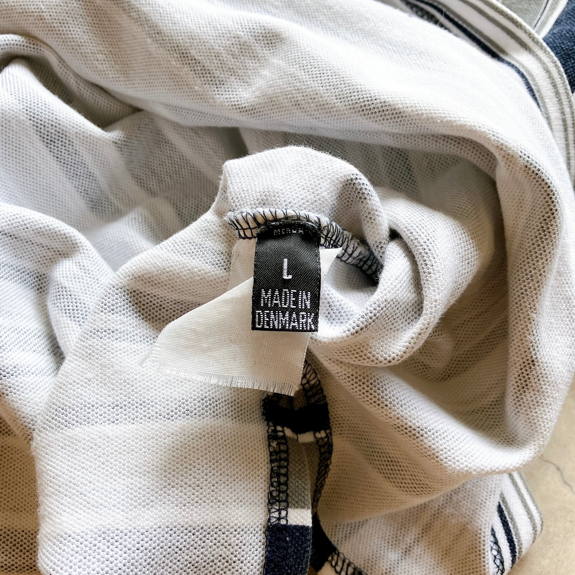90s Euro Pique Half Zip L/S Border Polo made in Denmark / ユーロ ハーフジップ 鹿子ポロ デンマーク製
