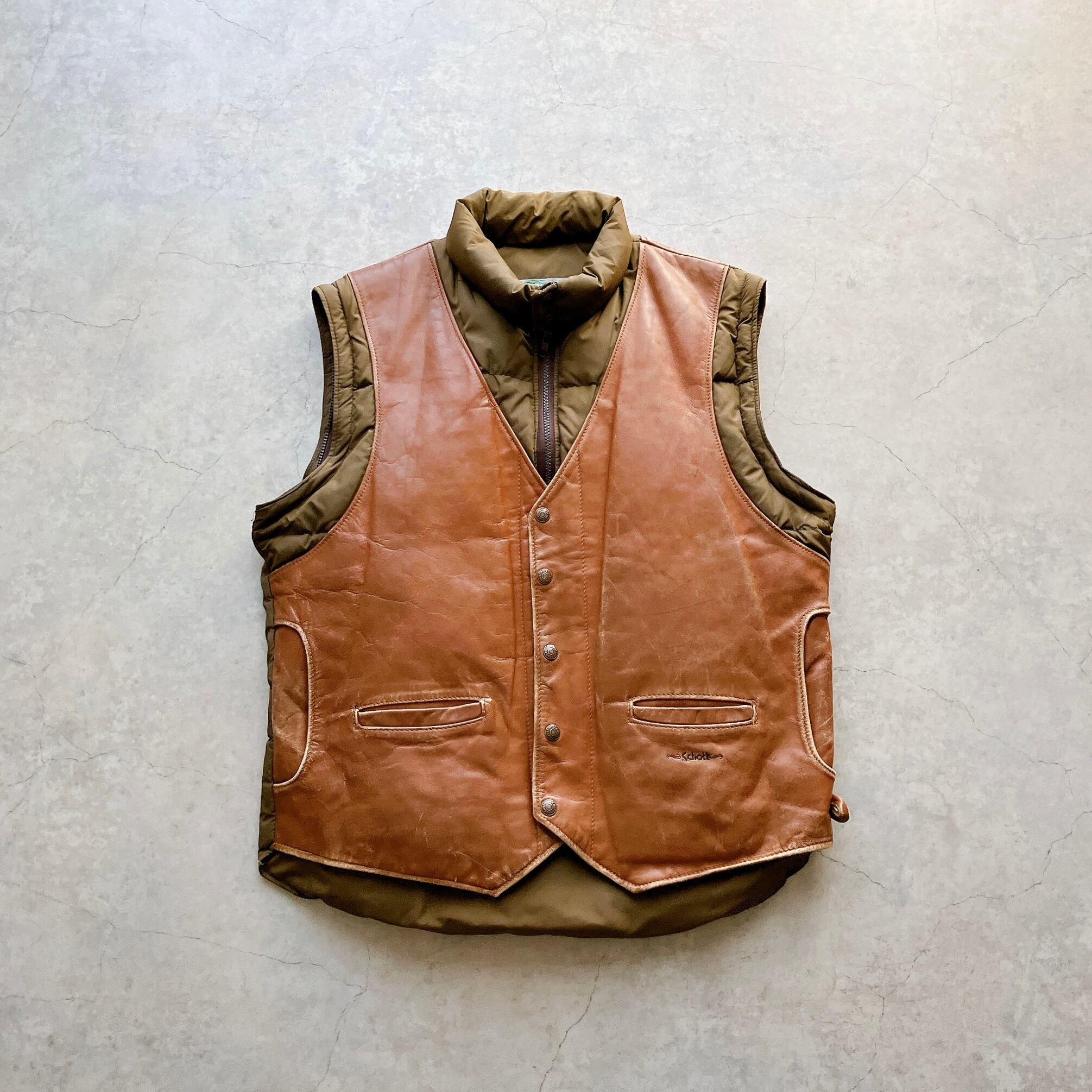 90s Schott 2Way Leather Down Jacket made in USA / ショット 切替 レザー ダウンジャケット ダウンベスト