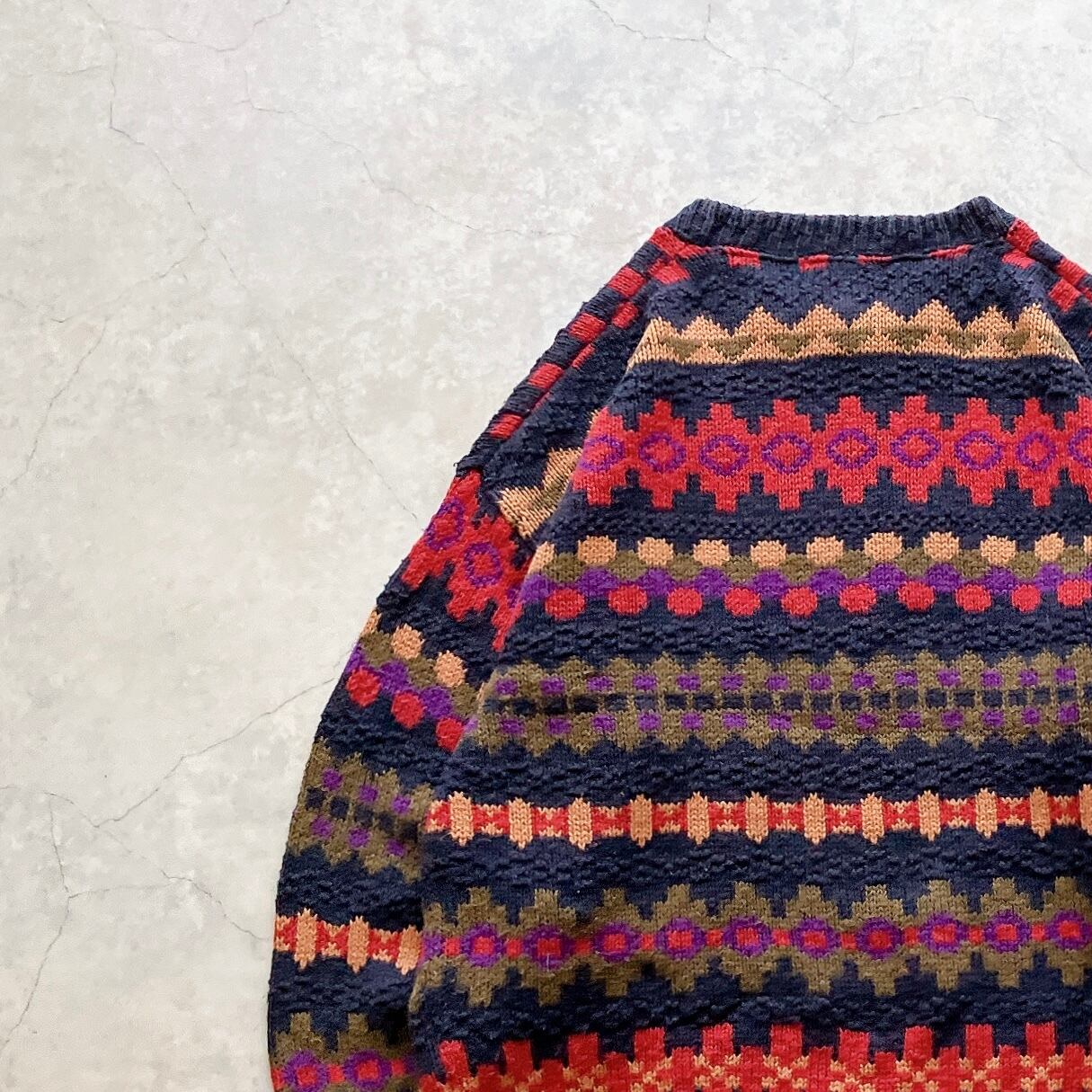 80s~ Woolrich Patterned Border Cotton Knit made in USA / アールリッチ 総柄 ボーダー コットンニット アメリカ製 USA製